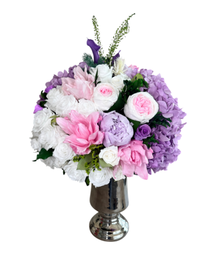 Grace is a delicate celebration of floral artistry, blending soft romance with timeless elegance. Featuring bio-preserved premium roses, lush callas,