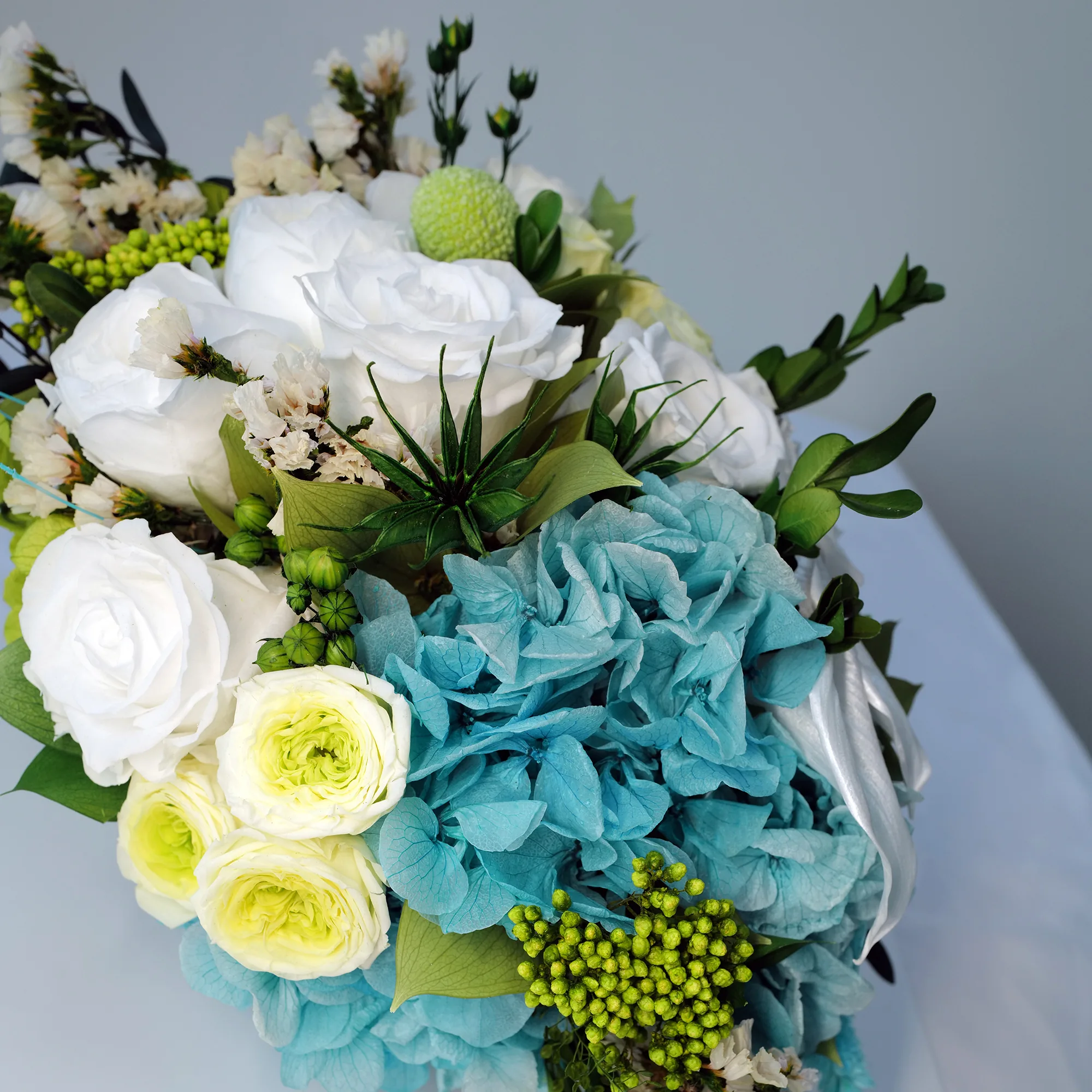 Loulou small blue and white preserved flowers arrangement in Dubai