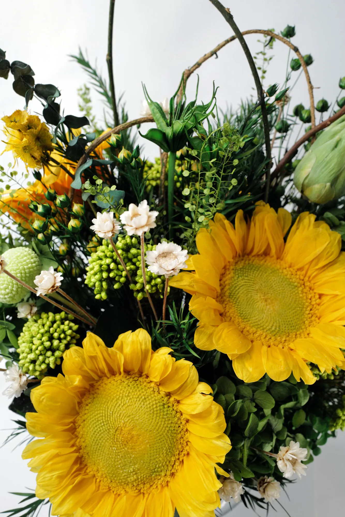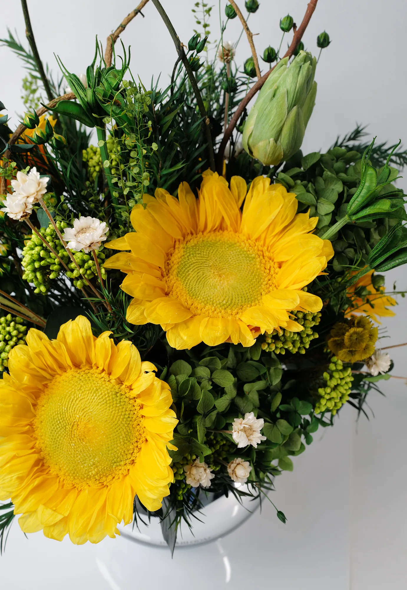 | Flower TypeExplore Our Premium Floral Selection The Flower Type attribute allows you to browse our exquisite collection based on the specific flowers used in each arrangement. From timeless roses and elegant orchids to lush peonies and vibrant dahlias, our curated selection ensures you find the perfect blooms for any occasion. Each flower type is carefully chosen for its beauty, longevity, and sophistication, offering both fresh and bio-preserved options. Whether you\'re looking for classic bouquets, statement floral pieces, or sustainable arrangements, our diverse range of flowers guarantees elegance that lasts. Find the perfect floral arrangement tailored to your taste and style. | Sunflowers |