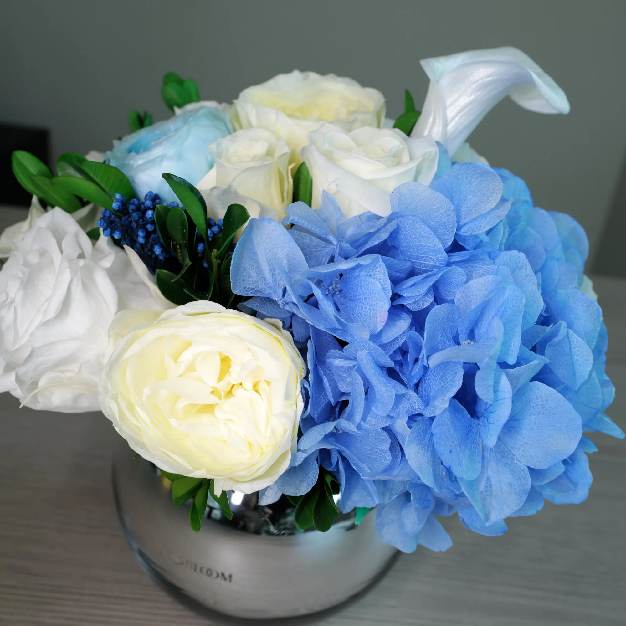 | Flower TypeExplore Our Premium Floral Selection The Flower Type attribute allows you to browse our exquisite collection based on the specific flowers used in each arrangement. From timeless roses and elegant orchids to lush peonies and vibrant dahlias, our curated selection ensures you find the perfect blooms for any occasion. Each flower type is carefully chosen for its beauty, longevity, and sophistication, offering both fresh and bio-preserved options. Whether you\'re looking for classic bouquets, statement floral pieces, or sustainable arrangements, our diverse range of flowers guarantees elegance that lasts. Find the perfect floral arrangement tailored to your taste and style. | Hydrangeas, Roses |
