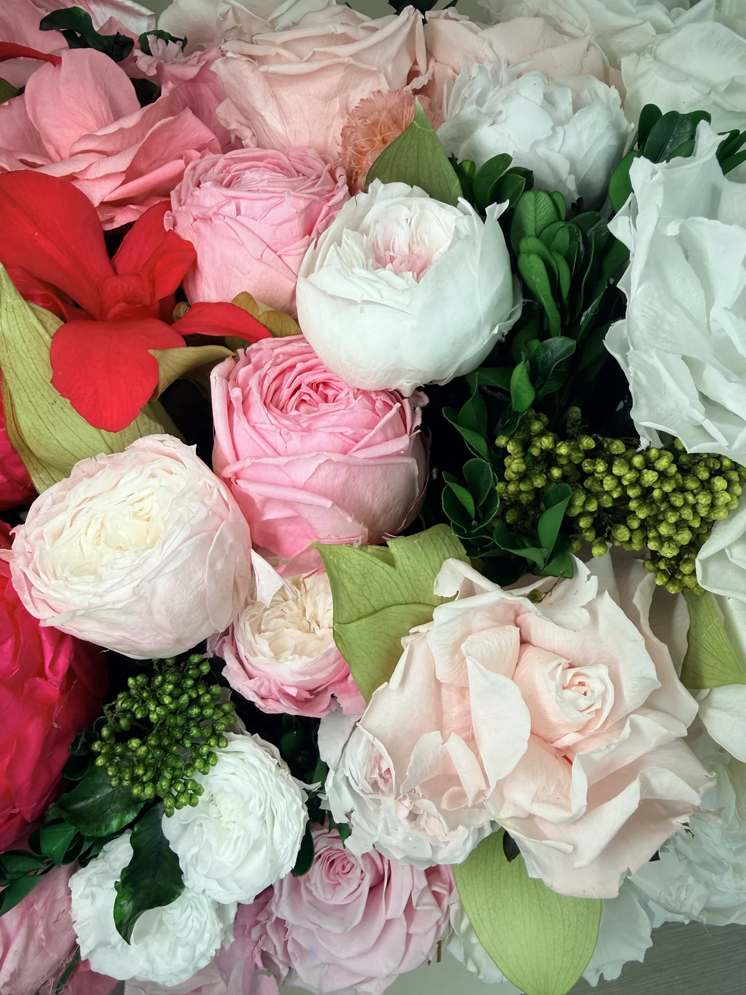 | Arrangement TypeDiscover the Perfect Floral Composition Our Arrangement Type selection offers a variety of exquisite floral designs to suit every occasion, space, and preference. Whether you\'re looking for a timeless bouquet, an elegant boxed arrangement, or a luxurious floral installation, our carefully crafted compositions bring lasting beauty to any setting. From hand-tied bouquets for heartfelt gifts to grand centerpiece arrangements for upscale interiors, each creation is designed with artistry and sustainability in mind. Choose from vase displays, dried flower arrangements, wedding florals, corporate designs, and more to find the perfect fit for your needs. Explore our collection and bring effortless elegance to your space with premium, long-lasting floral arrangements. | Box ArrangementsElegant floral compositions beautifully presented in premium boxes., Exclusive Large ArrangementsLuxurious and grand floral designs for upscale interiors and events. |