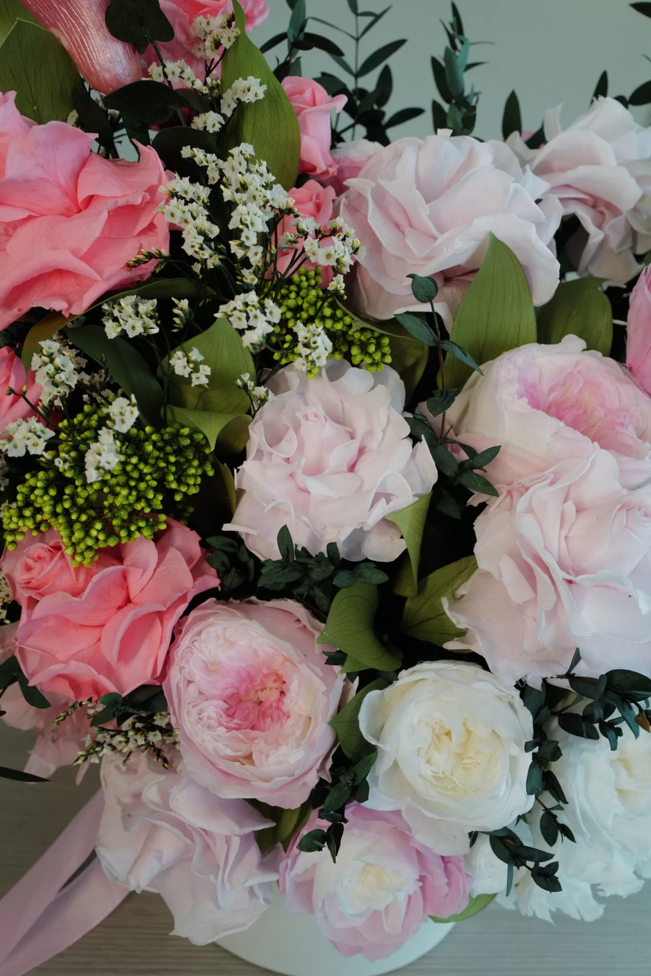 | Flower TypeExplore Our Premium Floral Selection The Flower Type attribute allows you to browse our exquisite collection based on the specific flowers used in each arrangement. From timeless roses and elegant orchids to lush peonies and vibrant dahlias, our curated selection ensures you find the perfect blooms for any occasion. Each flower type is carefully chosen for its beauty, longevity, and sophistication, offering both fresh and bio-preserved options. Whether you\'re looking for classic bouquets, statement floral pieces, or sustainable arrangements, our diverse range of flowers guarantees elegance that lasts. Find the perfect floral arrangement tailored to your taste and style. | Carnations, Roses |
