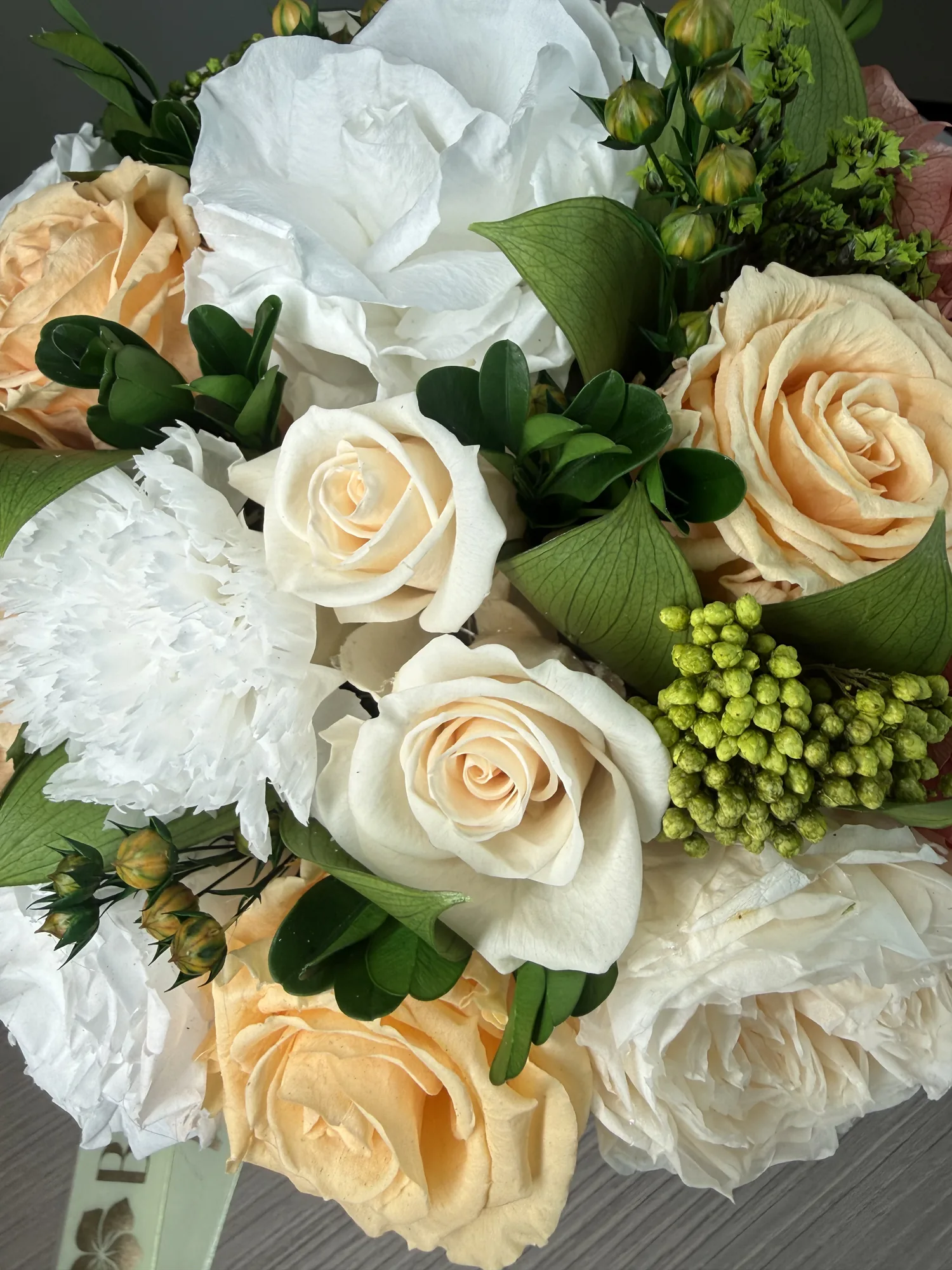 | Flower TypeExplore Our Premium Floral Selection The Flower Type attribute allows you to browse our exquisite collection based on the specific flowers used in each arrangement. From timeless roses and elegant orchids to lush peonies and vibrant dahlias, our curated selection ensures you find the perfect blooms for any occasion. Each flower type is carefully chosen for its beauty, longevity, and sophistication, offering both fresh and bio-preserved options. Whether you\'re looking for classic bouquets, statement floral pieces, or sustainable arrangements, our diverse range of flowers guarantees elegance that lasts. Find the perfect floral arrangement tailored to your taste and style. | Gardenias, Hydrangeas, Roses |