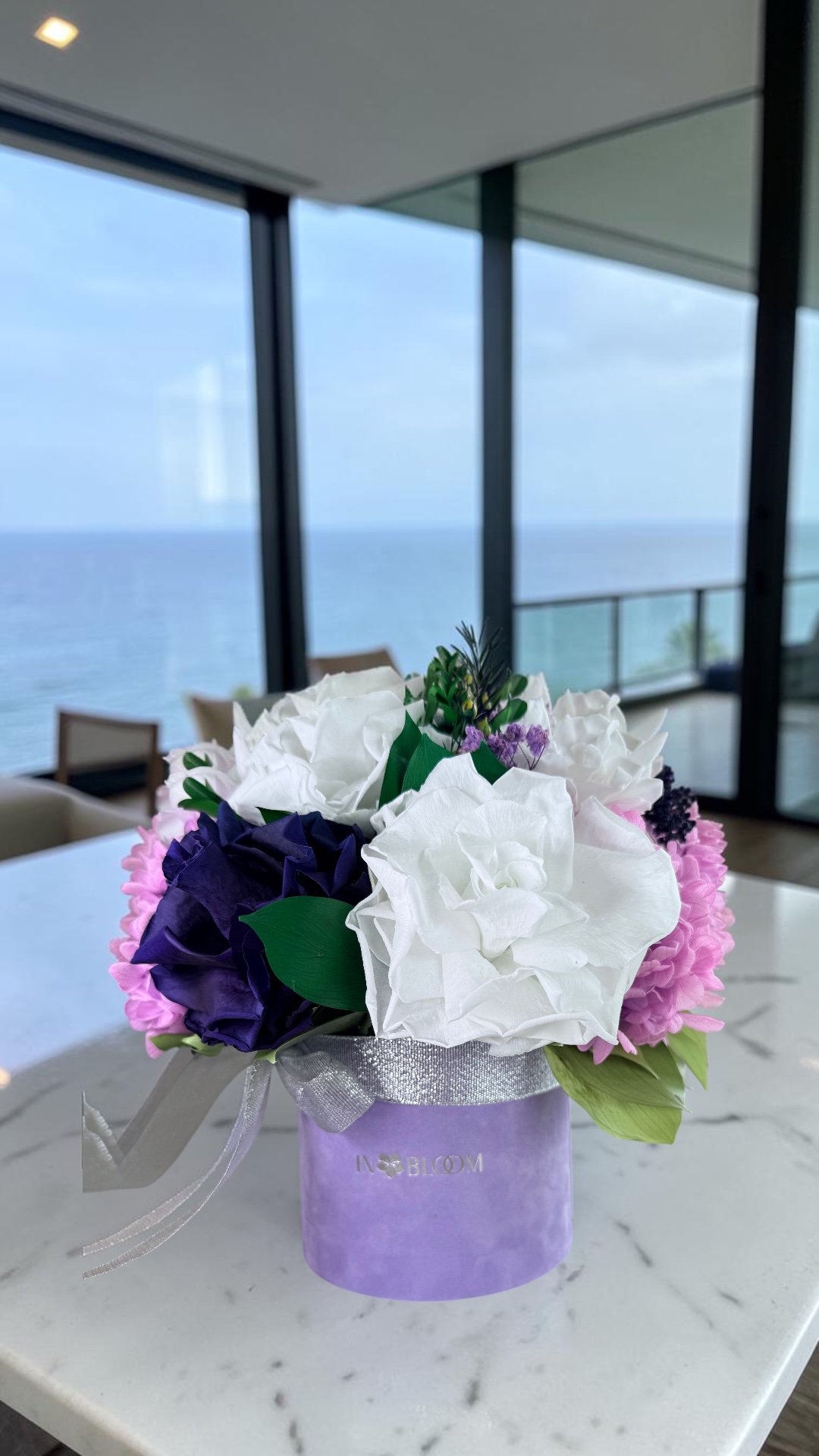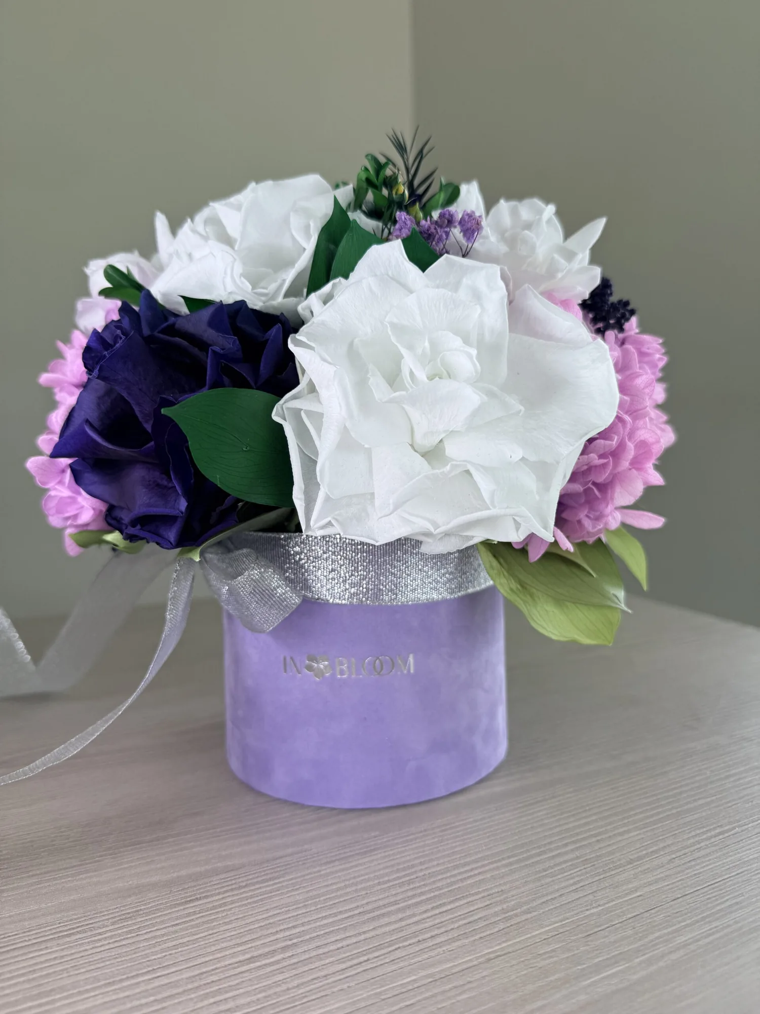 Presented in an IN BLOOM box, Ellis – Royal Serenity is ready to gift and easy to place on a console, coffee table, reception desk or bedside surface.