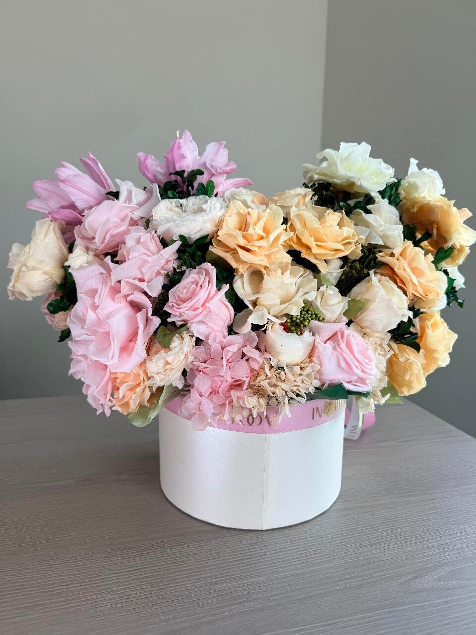 | Arrangement TypeDiscover the Perfect Floral Composition Our Arrangement Type selection offers a variety of exquisite floral designs to suit every occasion, space, and preference. Whether you\'re looking for a timeless bouquet, an elegant boxed arrangement, or a luxurious floral installation, our carefully crafted compositions bring lasting beauty to any setting. From hand-tied bouquets for heartfelt gifts to grand centerpiece arrangements for upscale interiors, each creation is designed with artistry and sustainability in mind. Choose from vase displays, dried flower arrangements, wedding florals, corporate designs, and more to find the perfect fit for your needs. Explore our collection and bring effortless elegance to your space with premium, long-lasting floral arrangements. | Box ArrangementsElegant floral compositions beautifully presented in premium boxes., Exclusive Large ArrangementsLuxurious and grand floral designs for upscale interiors and events. |