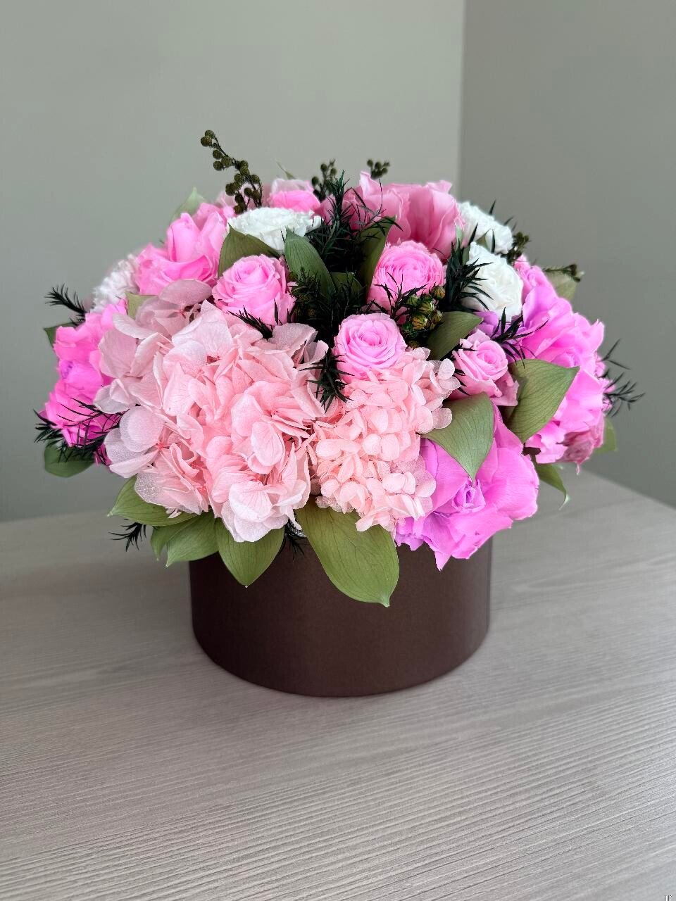 Flower TypeExplore Our Premium Floral Selection The Flower Type attribute allows you to browse our exquisite collection based on the specific flowers used in each arrangement. From timeless roses and elegant orchids to lush peonies and vibrant dahlias, our curated selection ensures you find the perfect blooms for any occasion. Each flower type is carefully chosen for its beauty, longevity, and sophistication, offering both fresh and bio-preserved options. Whether you\'re looking for classic bouquets, statement floral pieces, or sustainable arrangements, our diverse range of flowers guarantees elegance that lasts. Find the perfect floral arrangement tailored to your taste and style.Hydrangeas, Roses