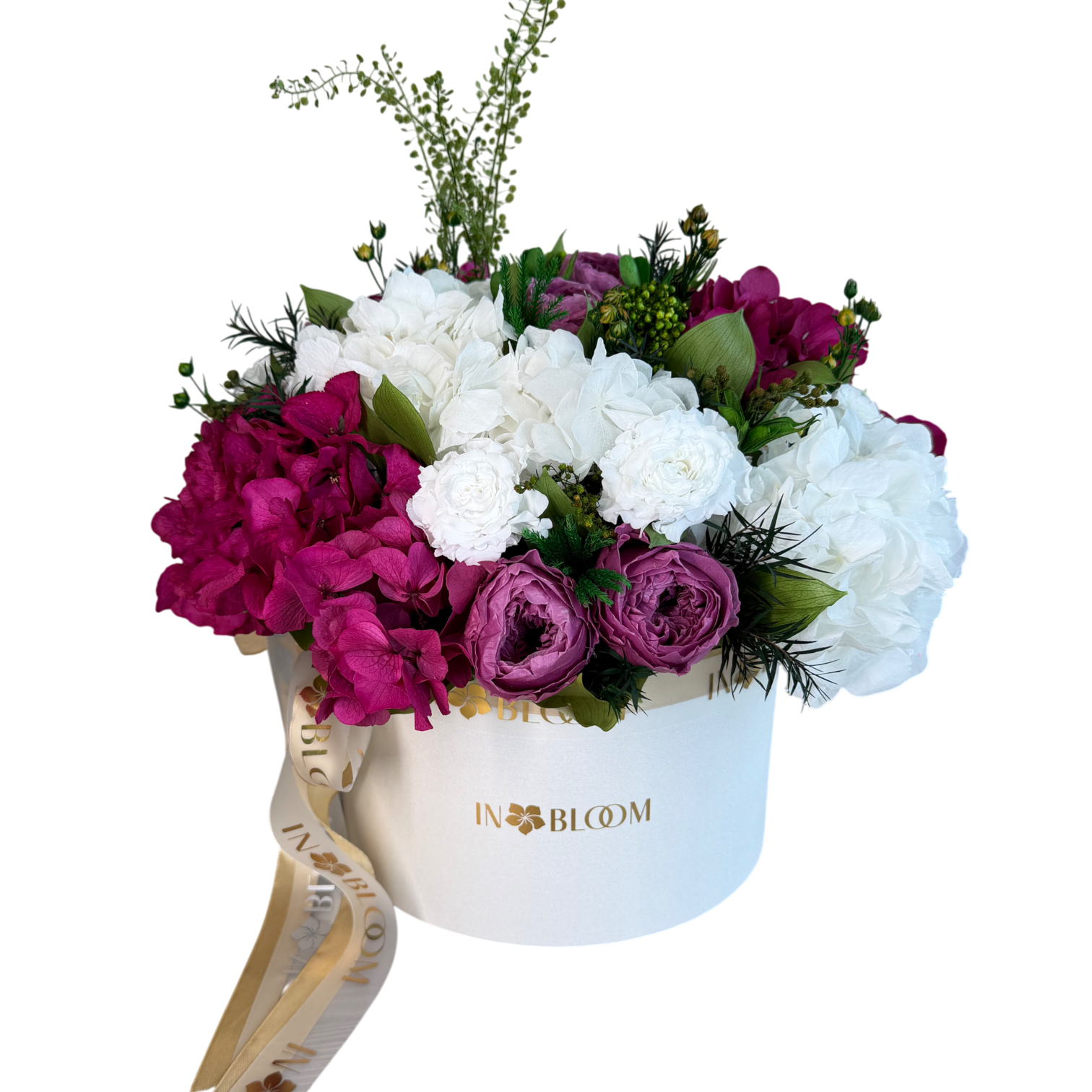 | Flower TypeExplore Our Premium Floral Selection The Flower Type attribute allows you to browse our exquisite collection based on the specific flowers used in each arrangement. From timeless roses and elegant orchids to lush peonies and vibrant dahlias, our curated selection ensures you find the perfect blooms for any occasion. Each flower type is carefully chosen for its beauty, longevity, and sophistication, offering both fresh and bio-preserved options. Whether you\'re looking for classic bouquets, statement floral pieces, or sustainable arrangements, our diverse range of flowers guarantees elegance that lasts. Find the perfect floral arrangement tailored to your taste and style. | Hydrangeas, Peonies, Roses |