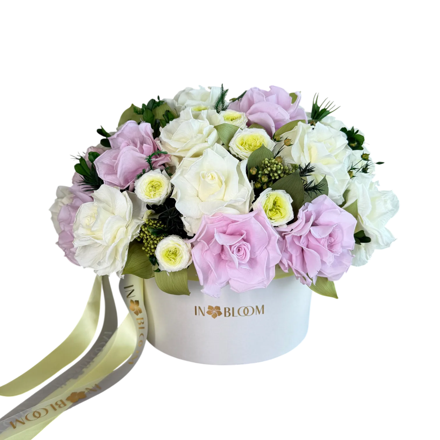 Olivia – Spring Breath is a long-lasting preserved flower gift box for Dubai celebrations, romantic gifting and premium home display, designed to stay elegant for over a year without water or daily care.