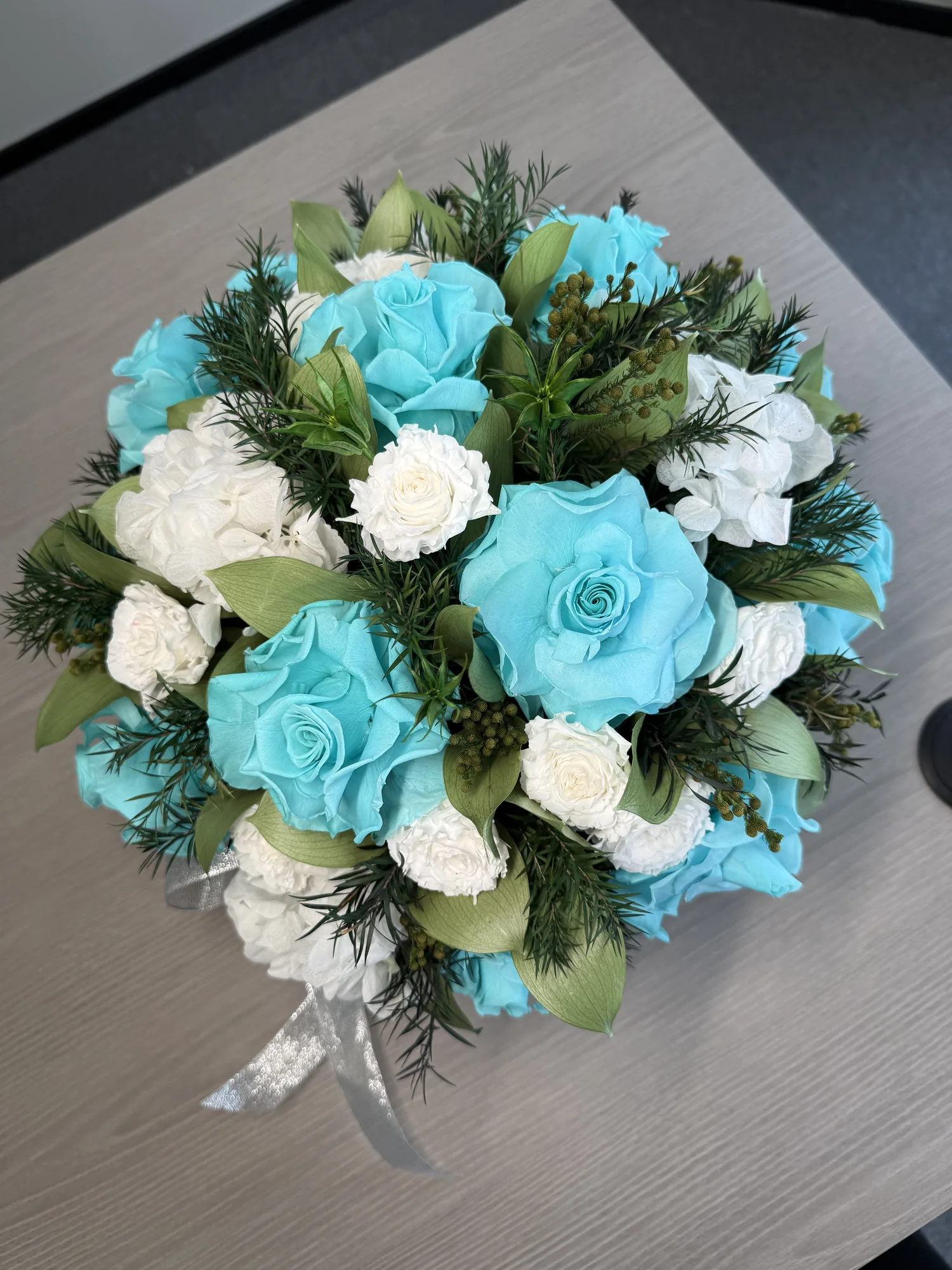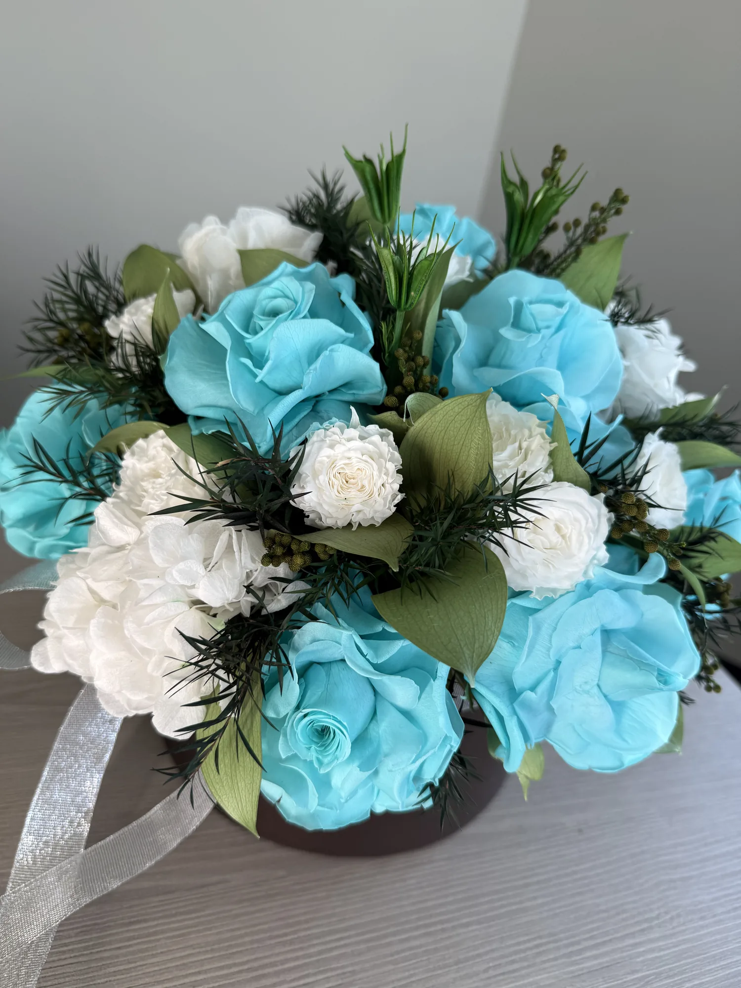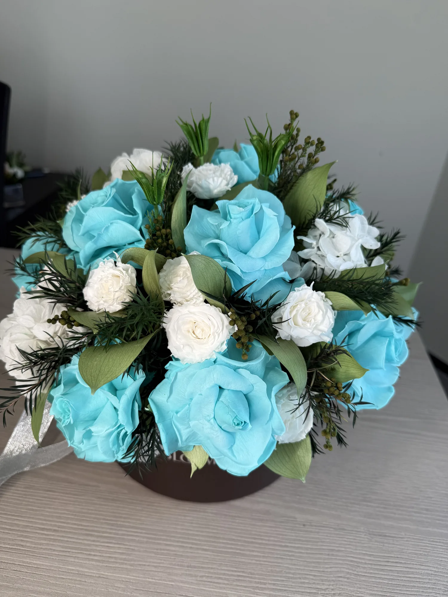 Olivia – Tiffany Sky is a long-lasting preserved flower gift box for Dubai celebrations, romantic gifting and premium home display, designed to stay elegant for over a year without water or daily care.