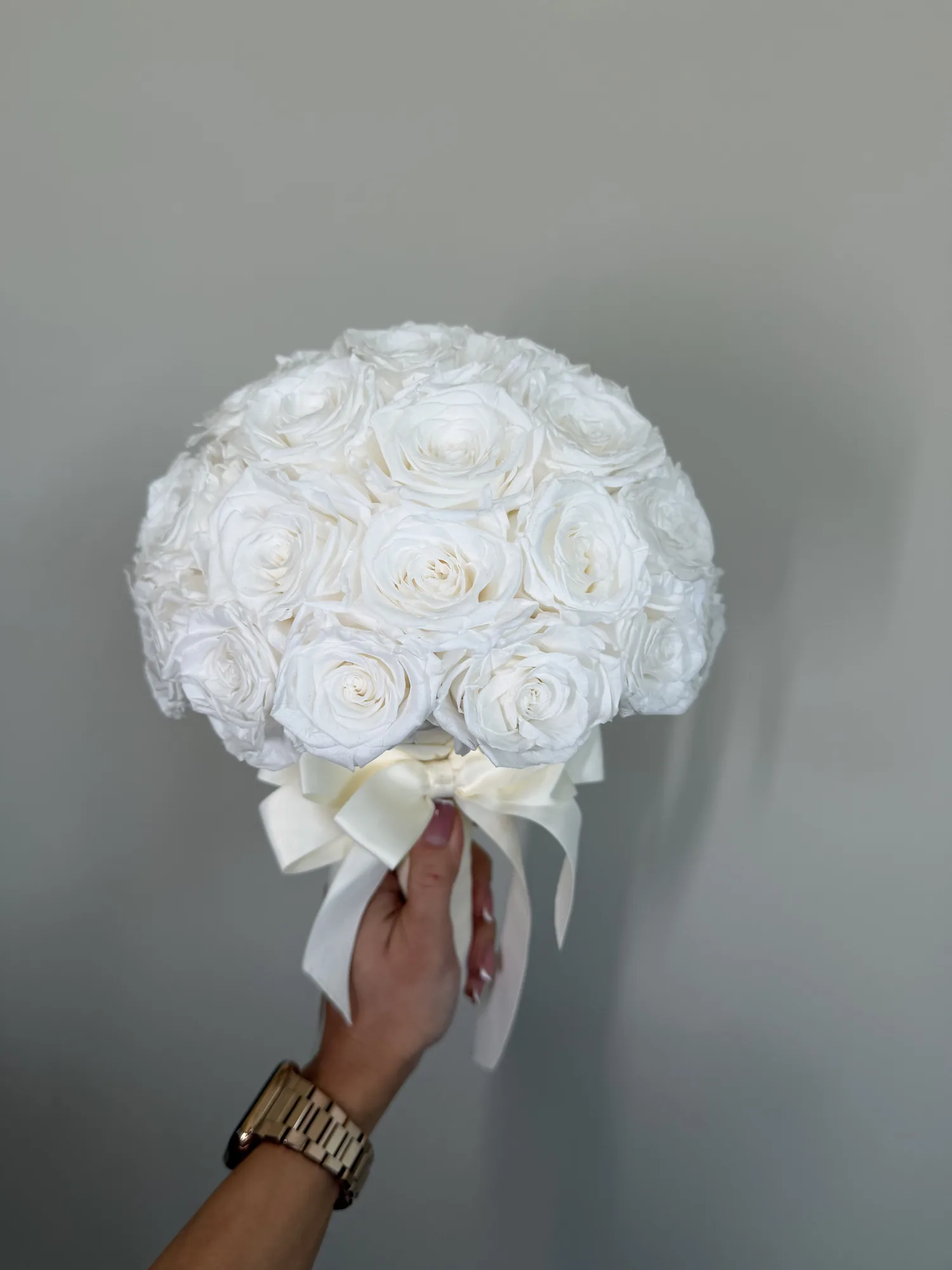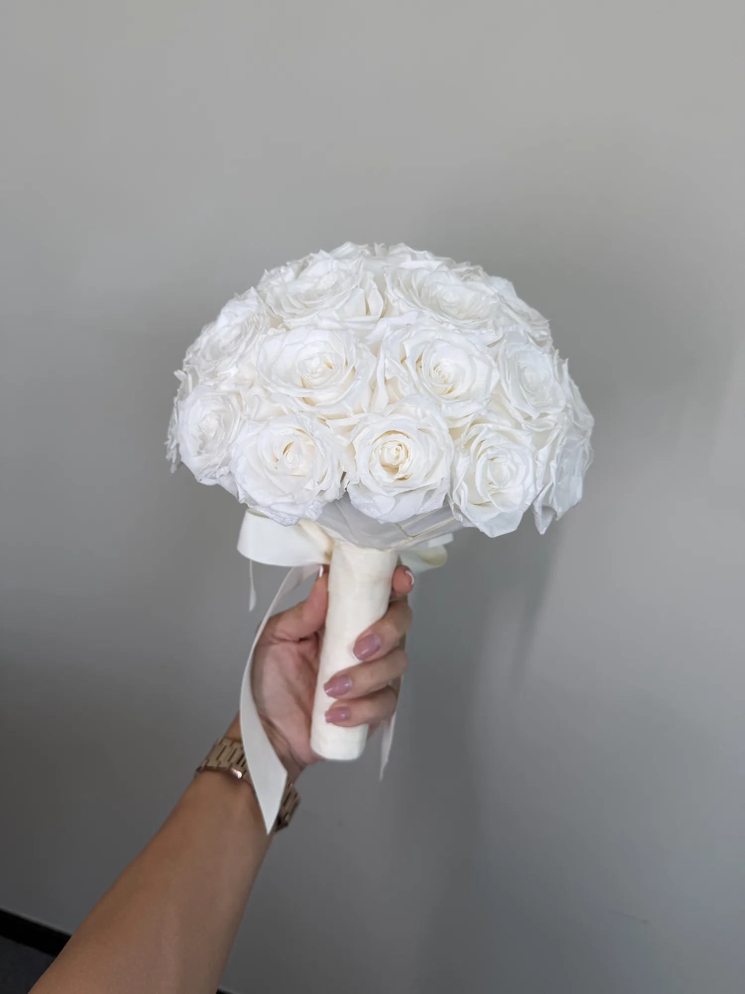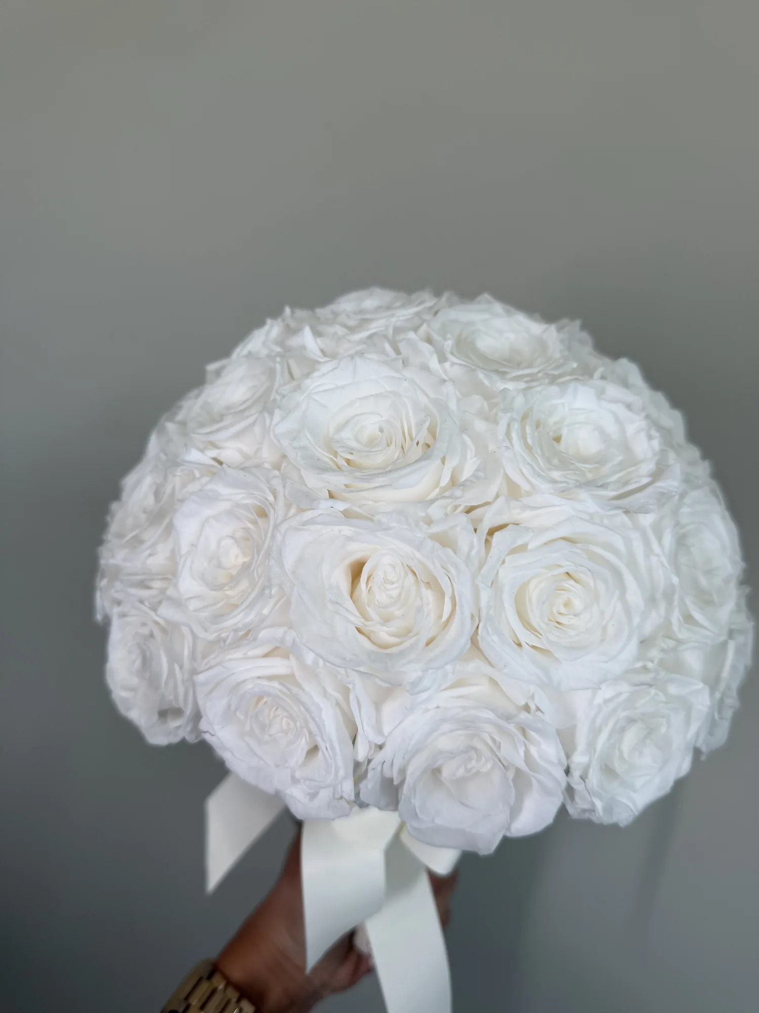 Bride bouquet – Pure Promise is a long-lasting preserved wedding flower arrangement for Dubai wedding styling, event decor and lasting keepsakes, designed to stay elegant for over a year without water or daily care.